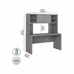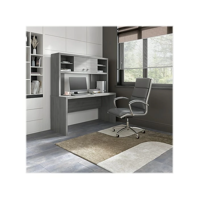 The Office by kathy ireland® Echo credenza desk with hutch offers an elegant, functional design to inspire today’s professional. Wide lines and a thick, durable surface create a strong presence, while a thermally fused laminate finish protects the office desk throughout years of everyday use. Spread out on the spacious 60″W surface with your computer, paperwork, or any other tasks of the day. Adding the coordinating hutch makes organizing your workspace simple. Each outer compartment in the hutch contains an adjustable shelf, and sliding doors offer flexible placement in the center or on the ends for concealing work materials or displaying decorative accents. Echo comes with a 3-year manufacturer warranty and meets the ANSI/BIFMA quality standards for safety and performance.
