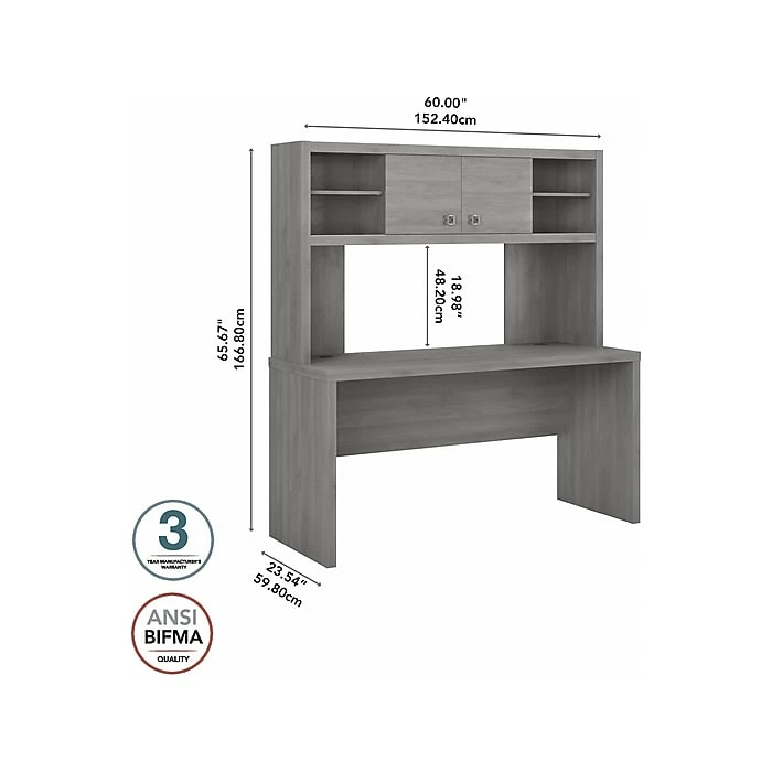 - Bundle includes: 60″W credenza desk, 60″W hutch