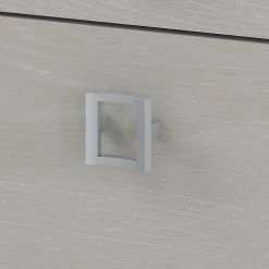 - Your choice of pure white or gray sand finishes and satin silver hardware create a contemporary charm