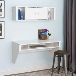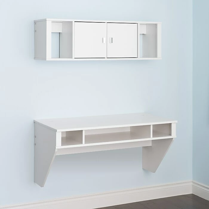 Optimize your space with Prepac’s Designer Floating Desk & Hutch. The combo is perfectly suited for any home office, den, living, room, kitchen or bedroom. The desk has a stable work surface that is ideal for any computer or simply as a place to get your work done. A rear âflip-upâ door conceals a storage compartment that is ideal for power bars and adapters. No more messy wires cluttering up your workspace! The hutch provides lots of functional storage including two middle compartments with doors to tastefully conceal items as well as two open compartments to display books or small decorative items. Installation is a breeze with Prepacâs hanging rail system. Manufactured in Canada from non-toxic, laminated composite woods and meets all North American safety standards. Ships Ready to Assemble, includes an instruction booklet for easy assembly and has a 5-year manufacturerâs limited warranty.