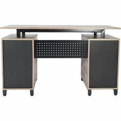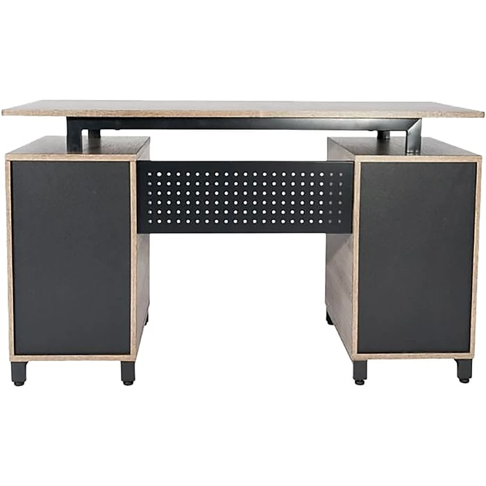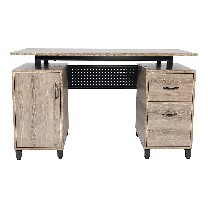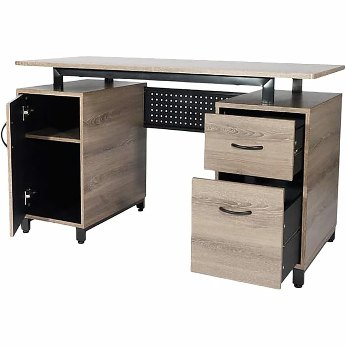 Define your home office space with this stylish computer desk to power through your daily projects. This functional desk is crafted from engineered wood with a laminate grey finish surface, it showcases a clean-lined silhouette and neutral touch. It includes a large bottom drawer that provides plenty of space for essential office supplies, one large top drawer, and a side storage compartment. It comes with a 5-year limited warranty.
