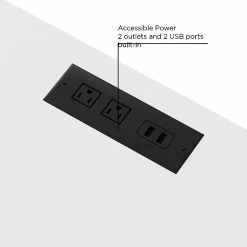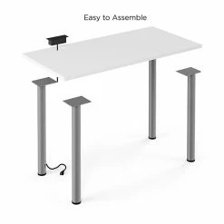 Create a functional workspace with this white desk. The powered grommet boasts USB plugs to charge your smartphone, tablet or other portable devices while still keeping the screens visible. Metal legs deliver strength and stability, while the commercial-grade construction ensures lasting use in your office. A rectangular desktop provides the space you need for your day-to-day work materials. With a compact footprint, this Union & Scaleâ„¢ Essentials white powered desk integrates seamlessly with a range of office layouts.