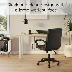 Create a functional workspace with this white desk. The powered grommet boasts USB plugs to charge your smartphone, tablet or other portable devices while still keeping the screens visible. Metal legs deliver strength and stability, while the commercial-grade construction ensures lasting use in your office. A rectangular desktop provides the space you need for your day-to-day work materials. With a compact footprint, this Union & Scaleâ„¢ Essentials white powered desk integrates seamlessly with a range of office layouts.