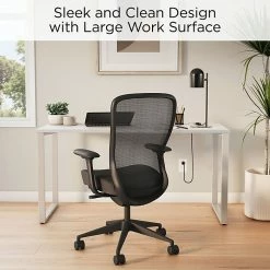- Desk surface and storage unit feature cord management grommets to conceal cables