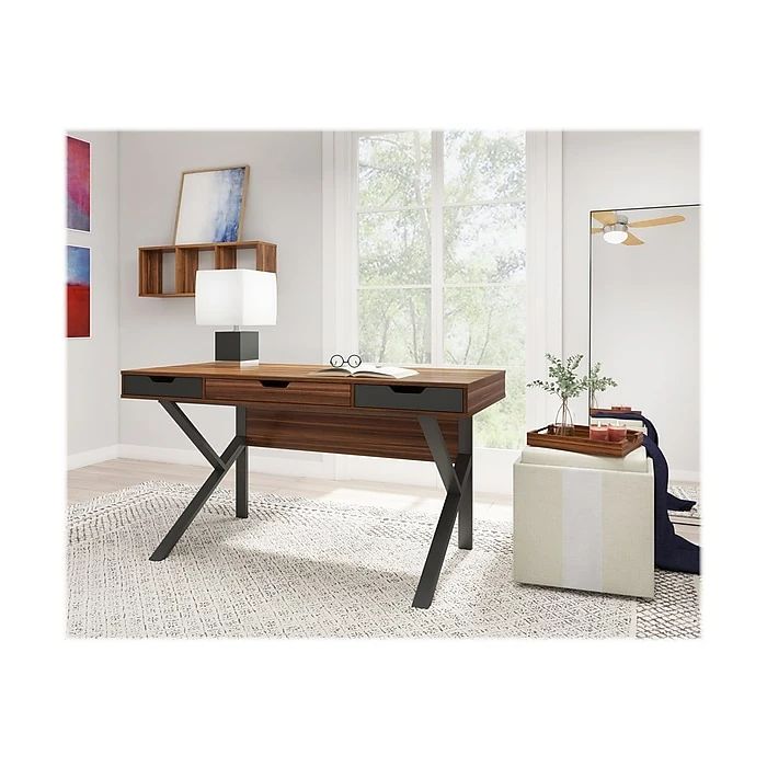 The Whalen Stirling 60″ desk offers a bold mid-century modern look with its two-tone finish work surface and drawer fronts. The desk features three storage drawers providing plenty of space to keep your work area free of clutter.